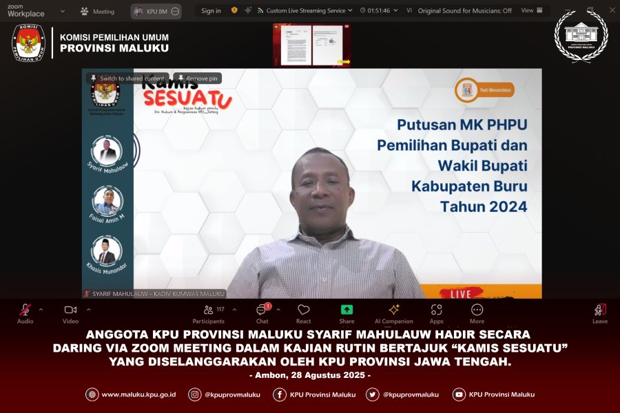 ANGGOTA KPU PROVINSI MALUKU SYARIF MAHULAUW HADIR SECARA DARING VIA ZOOM MEETING DALAM KAJIAN RUTIN BERTAJUK KAMIS SESUAT, DISELANGGARAKAN OLEH KPU PROVINSI JAWA TENGAH