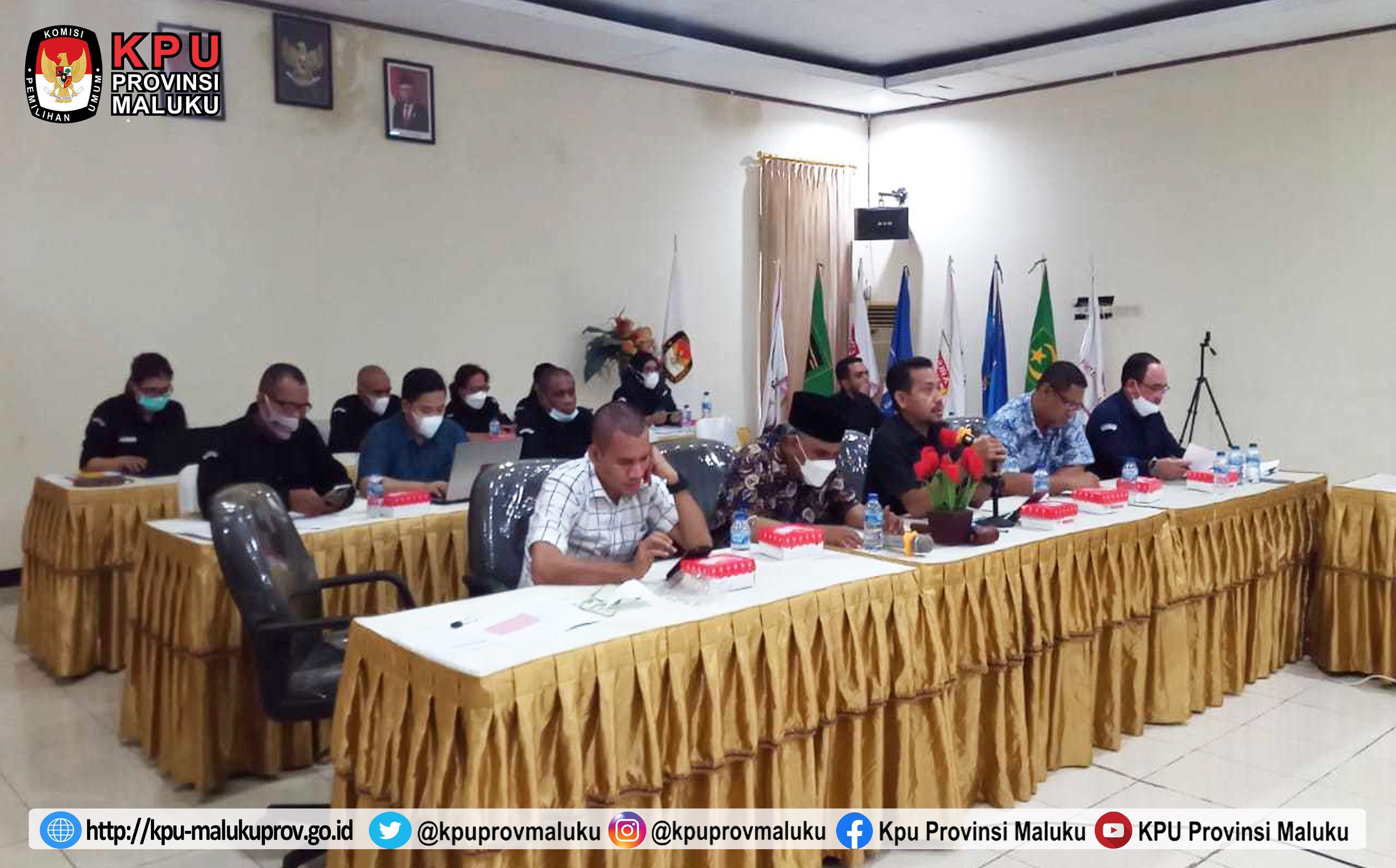 (9/6/21) Bertempat di Ruang Rapat Kantor KPU Provinsi Maluku, KPU Provinsi Maluku melaksanakan Rapat Koordinasi Pelaksanaan Program dan Anggaran Tahun 2021 bersama 11 KPU Kabupaten/Kota Se-Maluku via daring. Kegiatan ini selanjutnya akan rutin dilaksanakan 2x setiap bulan. Yang menjadi agenda pembahasan kegiatan ini diantaranya Realisasi Penggunaan Anggaran, Data Pemilih Berkelanjutan, Sistem Pengendalian Intern Pemerintah (SPIP), Desa Peduli Pemilu dan Pemilihan (DP3) dan Badan Koordinasi Kehumasan (Bakohumas).