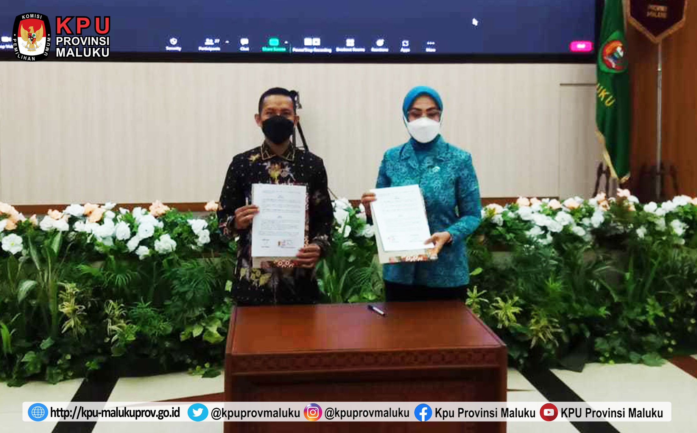 Hari ini Rabu 4 Agustus 2021 bertempat di lantai 7 Kantor Gubernur Provinsi Maluku, KPU Provinsi dan Kab/Kota Se-Maluku bersama TP PKK Provinsi dan Kab/Kota Se-Maluku telah melakukan Penandatanganan Nota Kesepahaman tentang Program Desa Peduli Pemilu dan Pemilihan Basis Keluarga Perempuan Sadar Pemilu Secara Serentak di Provinsi Maluku secara luring dan daring. Turut hadir dalam kegiatan ini Ketua KPU RI Bpk. Ilham Saputra dan Anggota KPU RI Bpk. Dewa Raka Sandi secara daring.