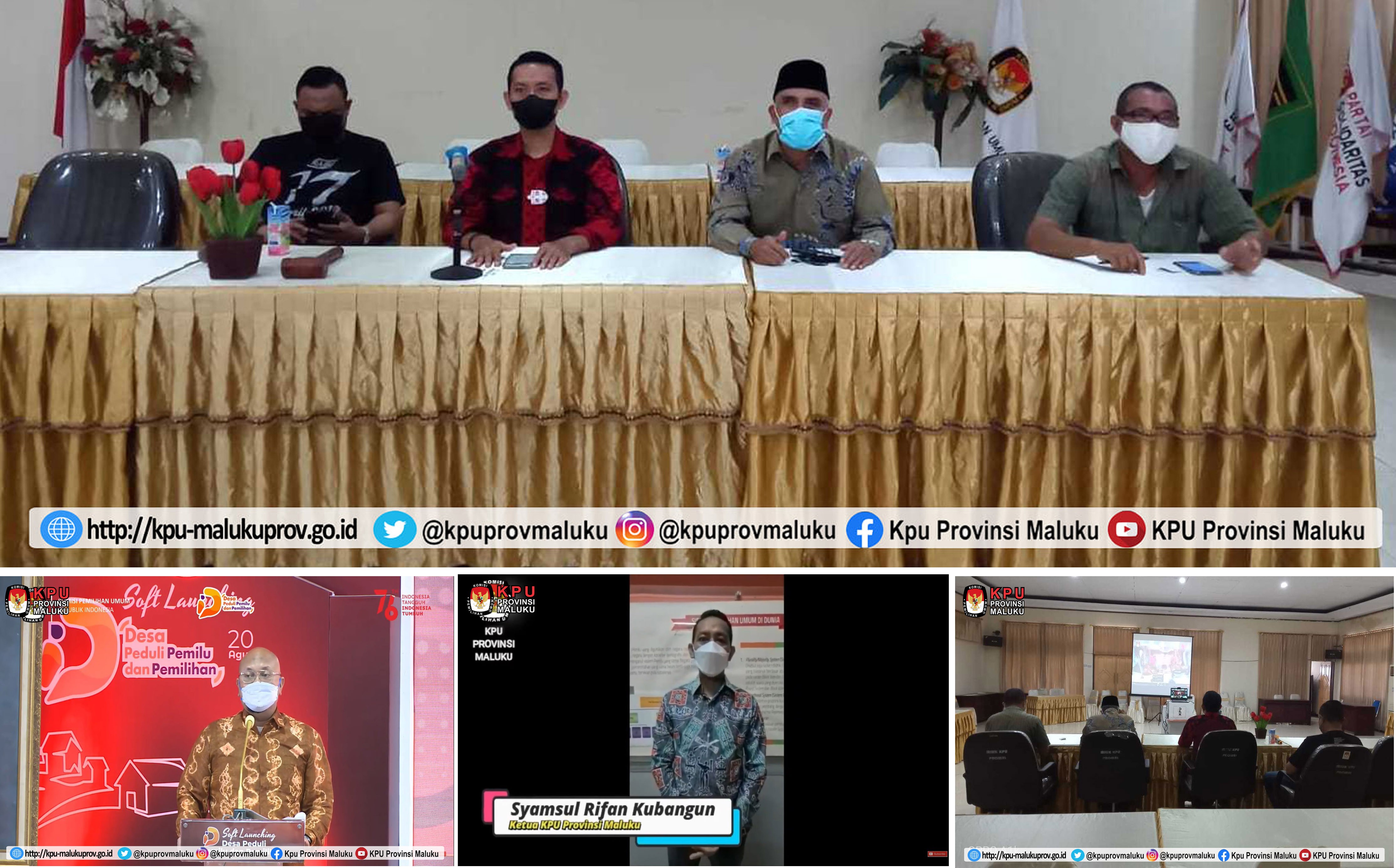 (20/8/21) KPU Provinsi Maluku menghadiri Kegiatan Soft Launching Program Desa Peduli Pemilu dan Pemilihan (DP3) yang dilaksanakan via daring. Program ini diharapkan mampu mendorong masyarakat pemilih yang mandiri, cerdas, bertanggung jawab dan tumbuh kesadaran berpartisipasi aktif pada Pemilu dan Pemilihan 2024 mendatang. Ketua KPU RI Ilham Saputra bersama Sekretaris Jenderal KPU RI Bernad Dermawan Sutrisno meresmikan Program Desa Peduli Pemilu dan Pemilihan "Dari Desa Untuk Indonesia". Turut hadir dalam peresmian ini, Anggota KPU RI, I Dewa Kade Wiarsa Raka Sandi, Pramono Ubaid Tanthowi, Arief Budiman, Hasyim Asy'ari, Viryan dan Evi Novida Ginting Manik. Ilham dalam sambutannya menekankan desa merupakan unit terkecil arena politik, sosial , ekonomi dan budaya yang berpengaruh kuat dalam pengembangan demokrasi. Dari desa tumbuh nilai-nilai kekeluargaan, gotong royong dan musyawarah. Jika desa sudah mandiri dan rasional maka akan berdampak pada tingkatan yang lebih luas. Itulah moto dari program ini "Dari Desa Untuk Indonesia". Kegiatan digelar dengan menerapkan protokol kesehatan Covid-19 ketat.